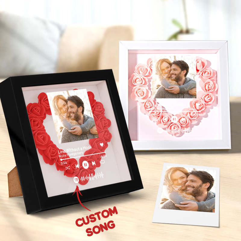 Custom Scannable Spotify Code Photo Music Flower Shadow Box Personalized Flower Shadowbox Frame Gift