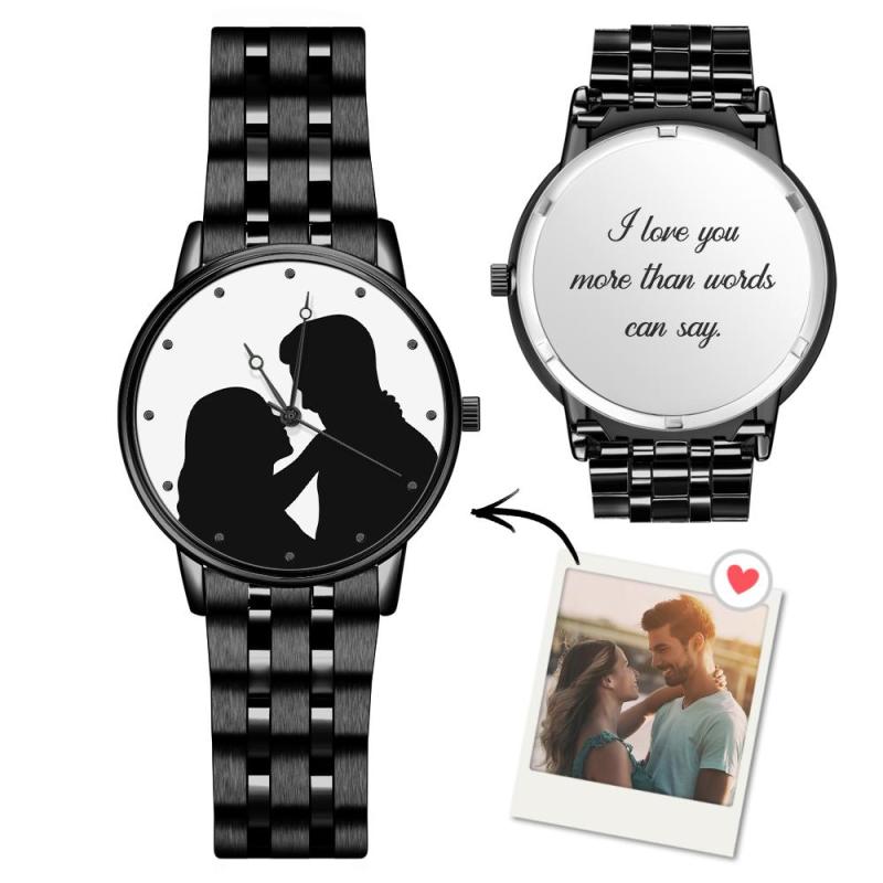 Custom Silhouette Photo Watch Personalized Engraved Watch Memorial Gifts For Couples