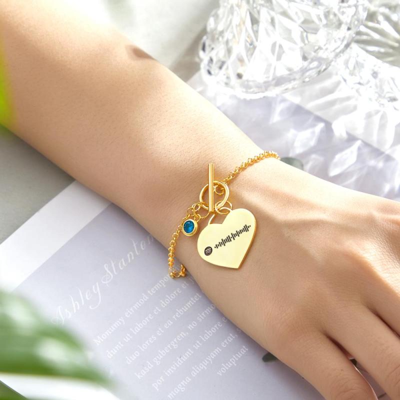 Custom Spotify Code Heart Bracelet with Birthstone Creative Gift for Women