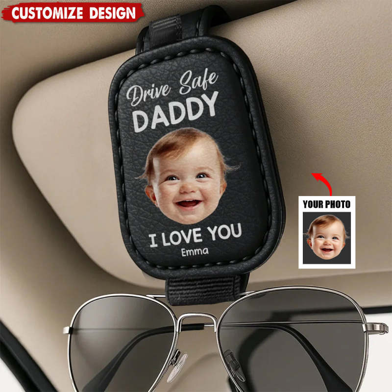 Custom Sunglasses Holder Drive Safe Daddy Love Always Family Personalized Photo Sunglasses Holder For Car Visor Father's Day Gift