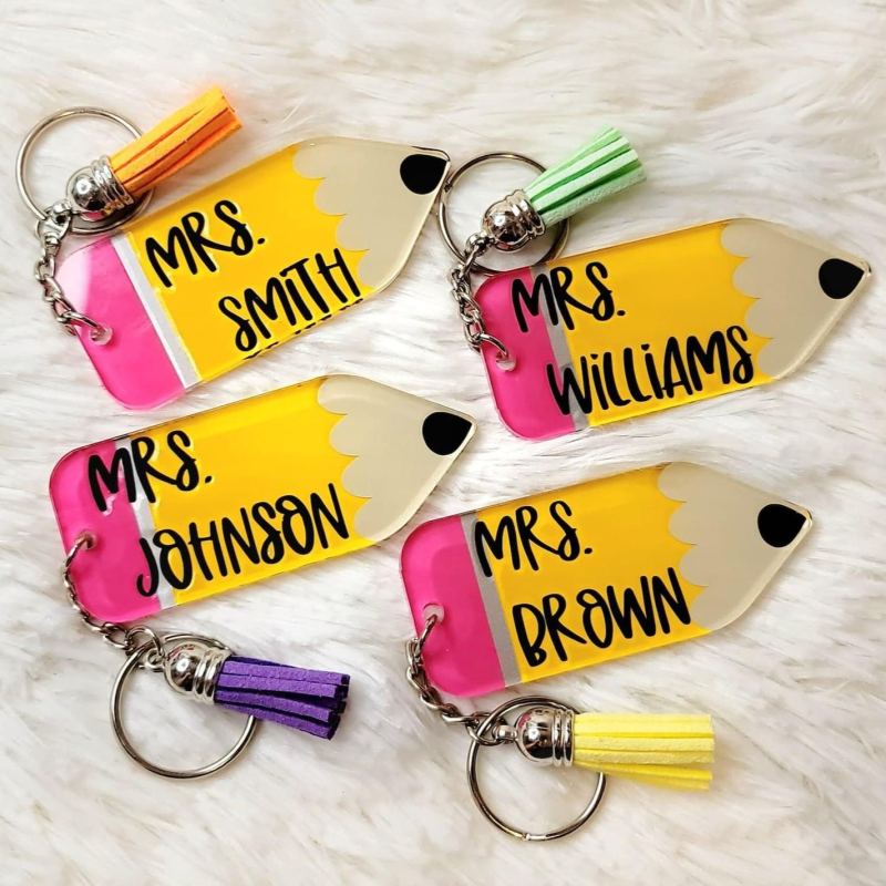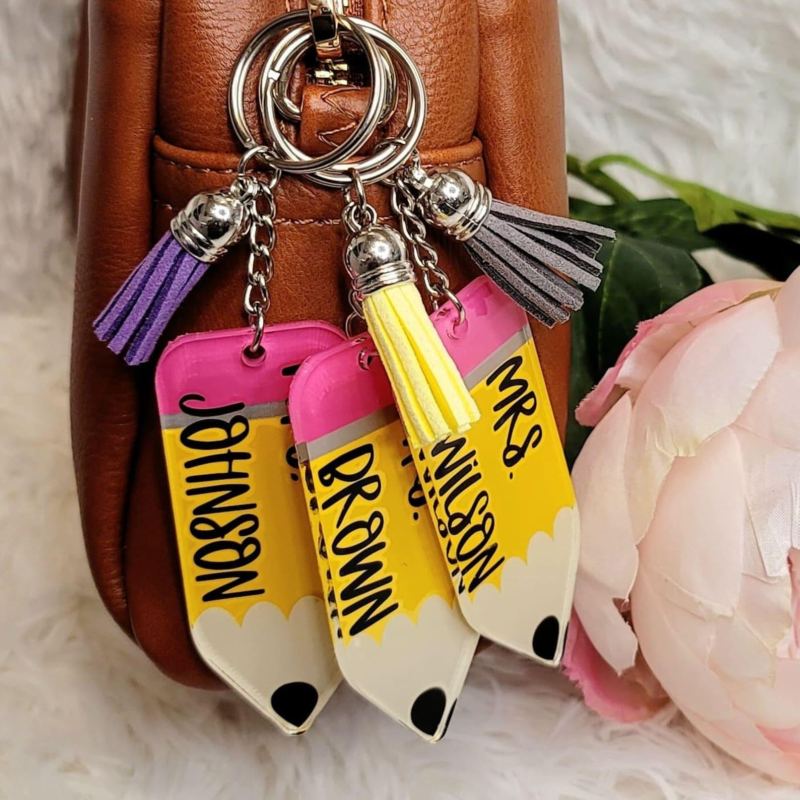 Personalized Teacher Pencil Keychain Custom Name Engraved Gift Custom Teacher Appreciation Keychain Acrylic Pencil with Tassel