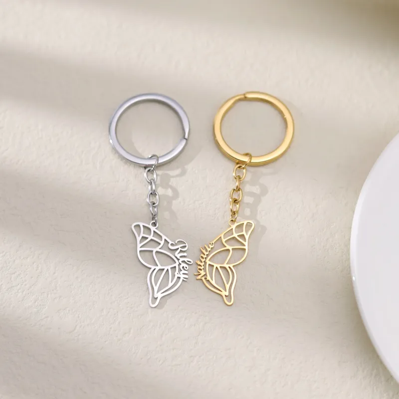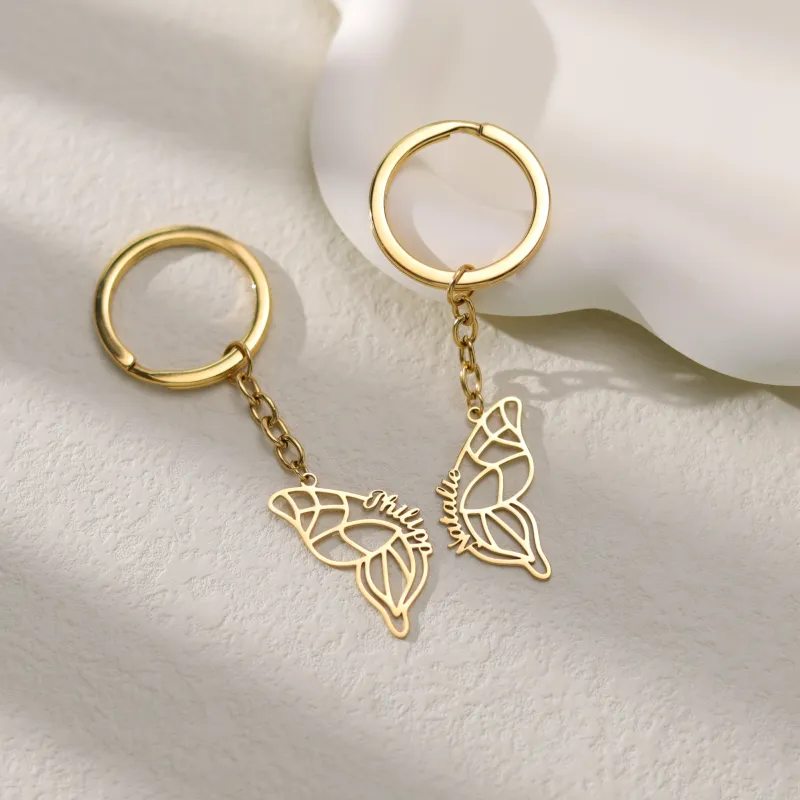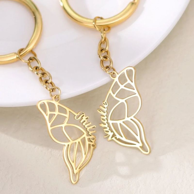 Custom Two Butterfly Keychains Personalized Name Engraved Butterfly Key Chain Set of 2 Gift for Best Friends or Sisters