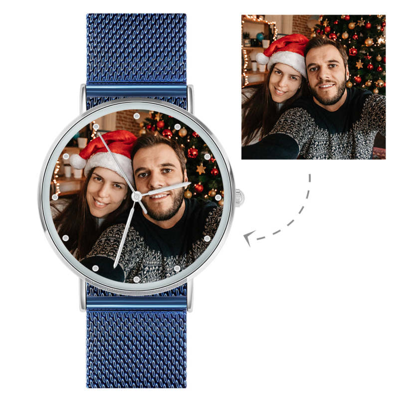 Custom Your Own Women Photo Engraved Watch with Blue Strap