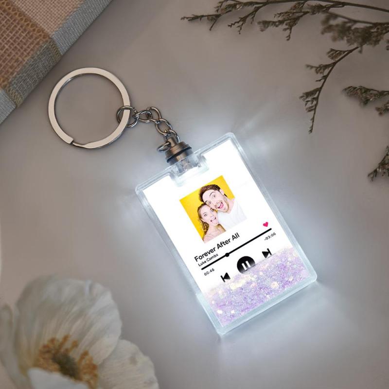 Custom Photo Scannable Spotify Code Illuminated Quicksand Keychain Gift for Any Occasion