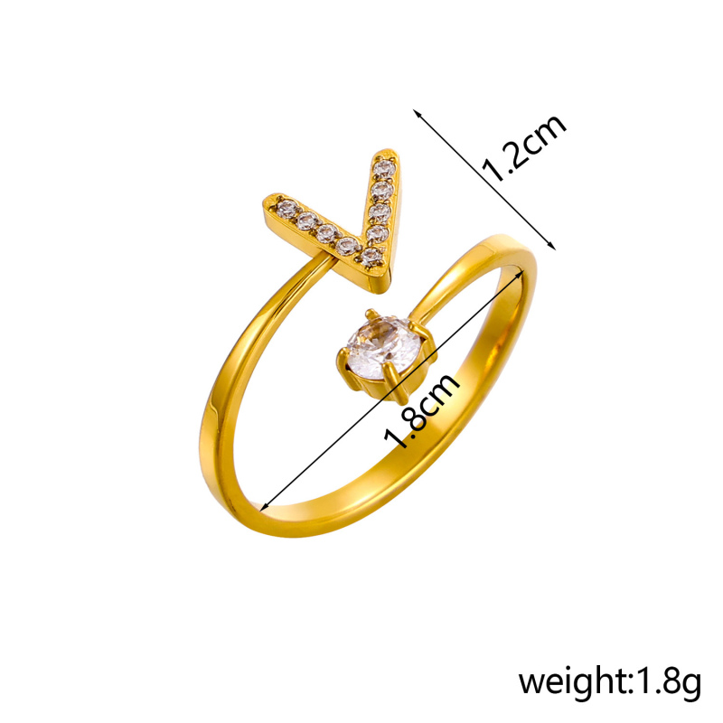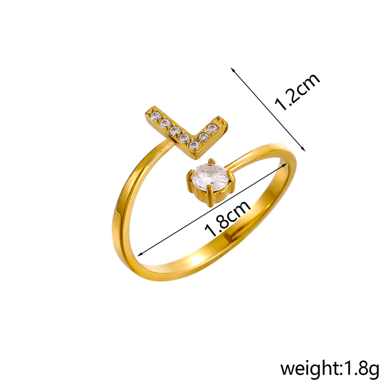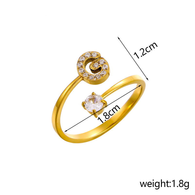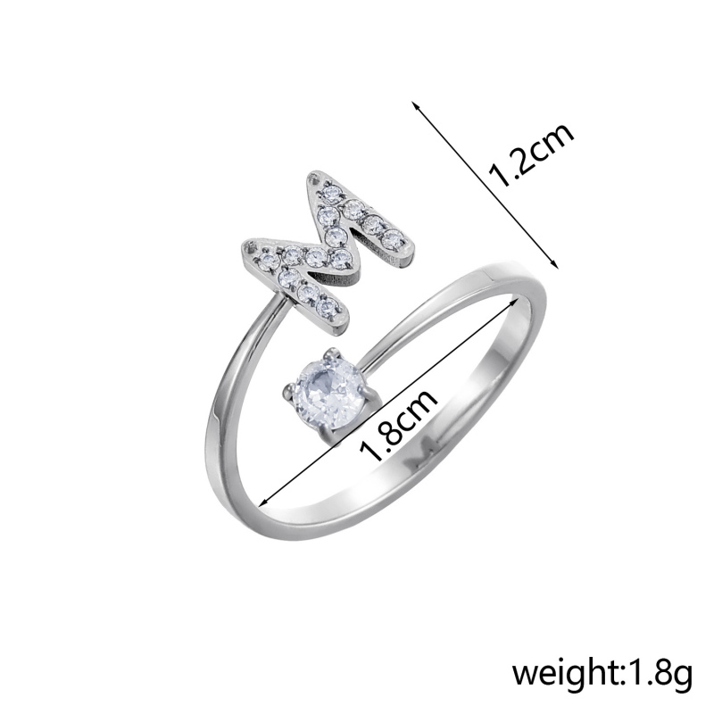 Dainty Initial Ring Adjustable Open Alphabet Letter Ring Cubic Zirconia Personalized Stackable Ring Gold/Silver Plated Women's Jewelry Gift