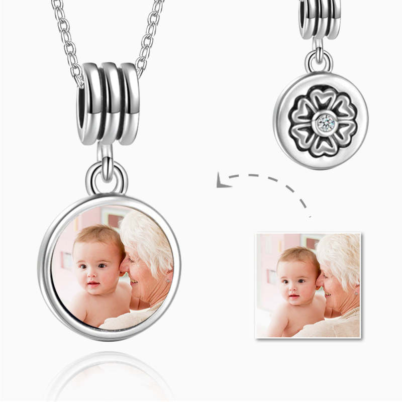 Dangle Round Petal Photo Necklace Silver