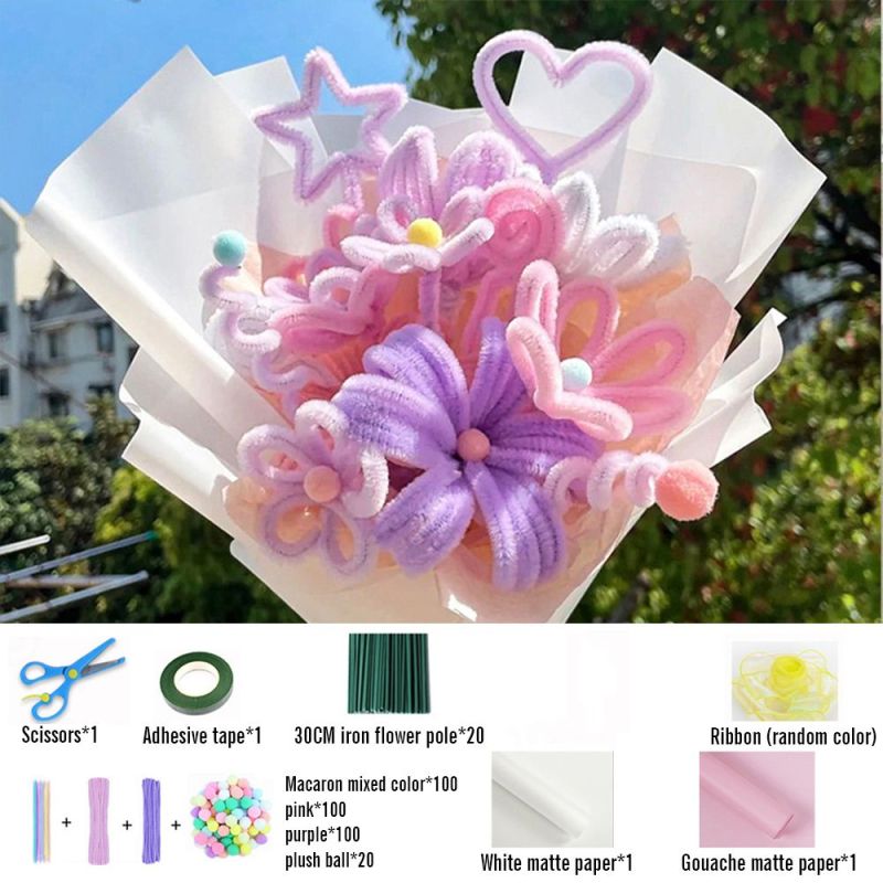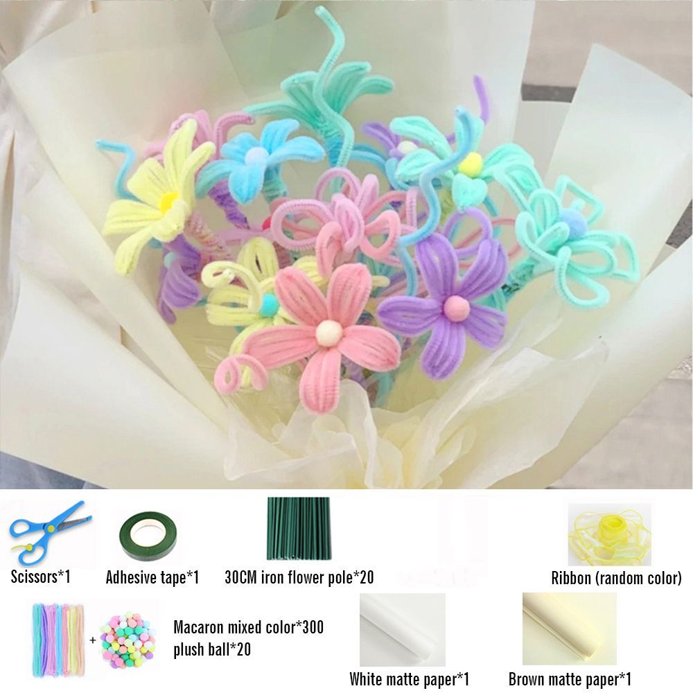 DIY Pipe Cleaner Macaron Color Bouquet Handmade Twist Stick Bouquet Gift
