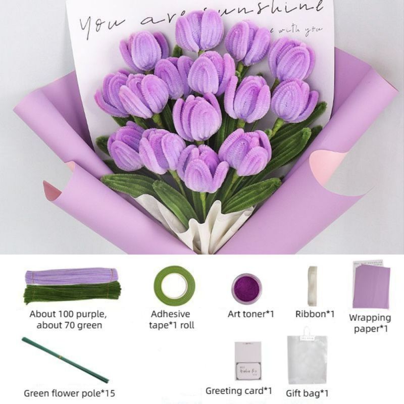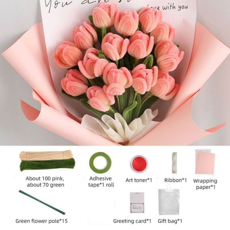 DIY Pipe Cleaner Tulip Bouquet Handmade Twist Stick Bouquet Gift for Her