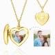 Embossed Printing Heart Photo Locket Necklace With Engraving 14k Gold Plated