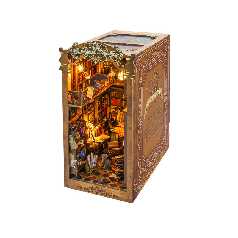 Enchanted Library Book Nook DIY Kit Magical Bookshelf Insert with LED Light & Miniature Details