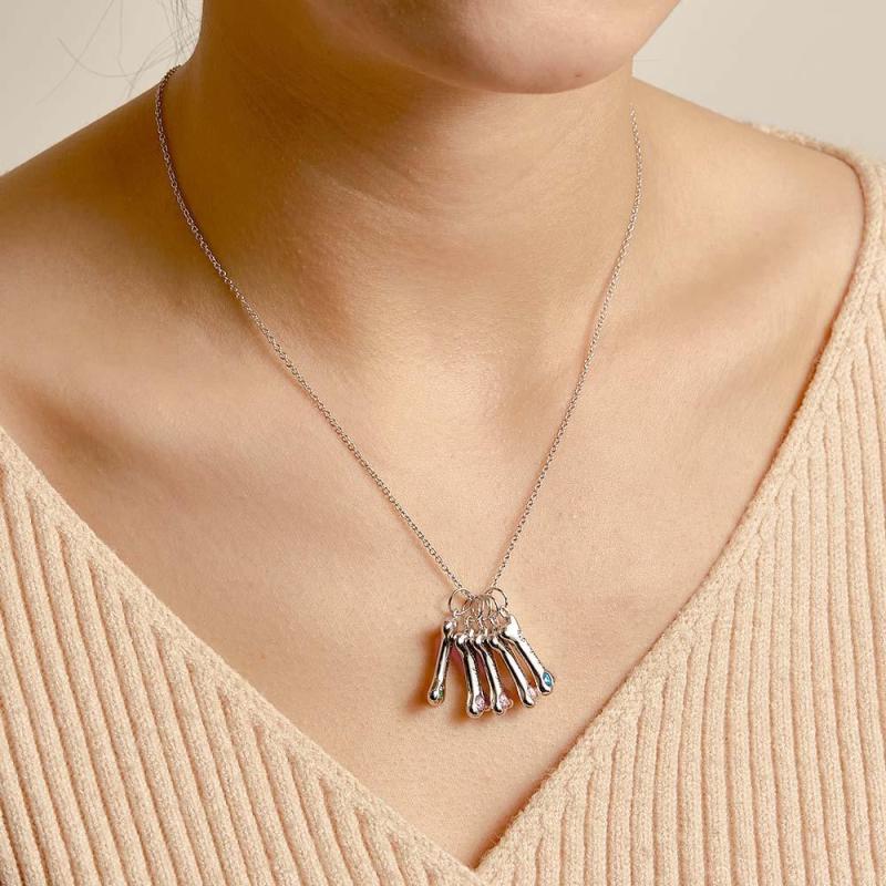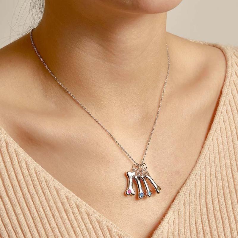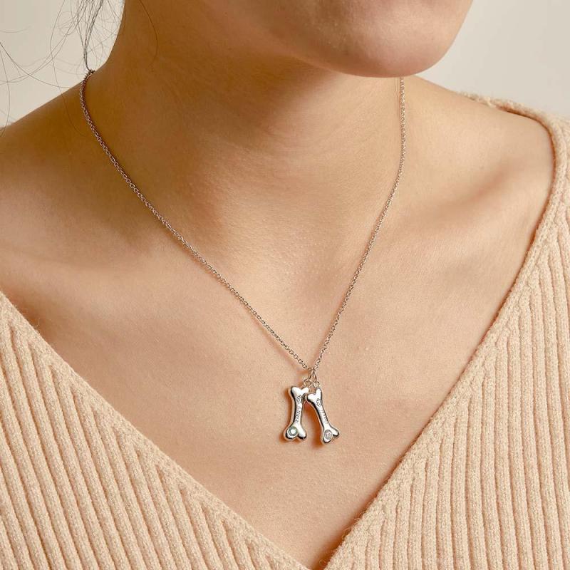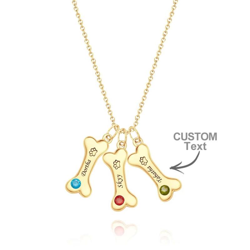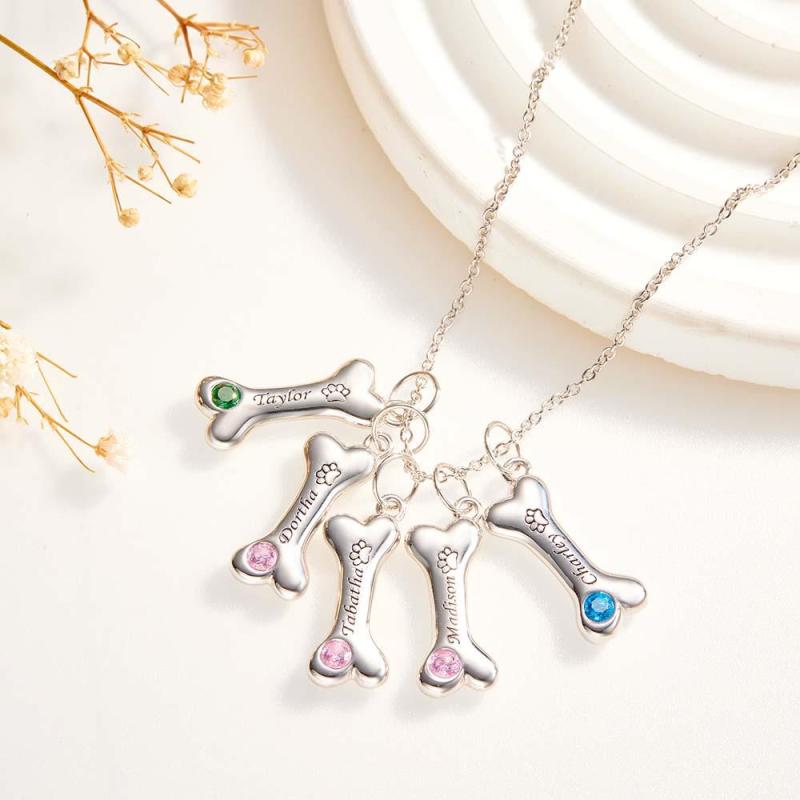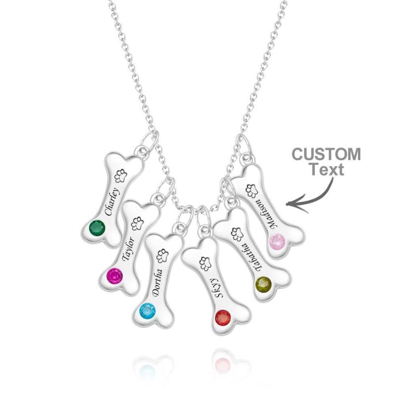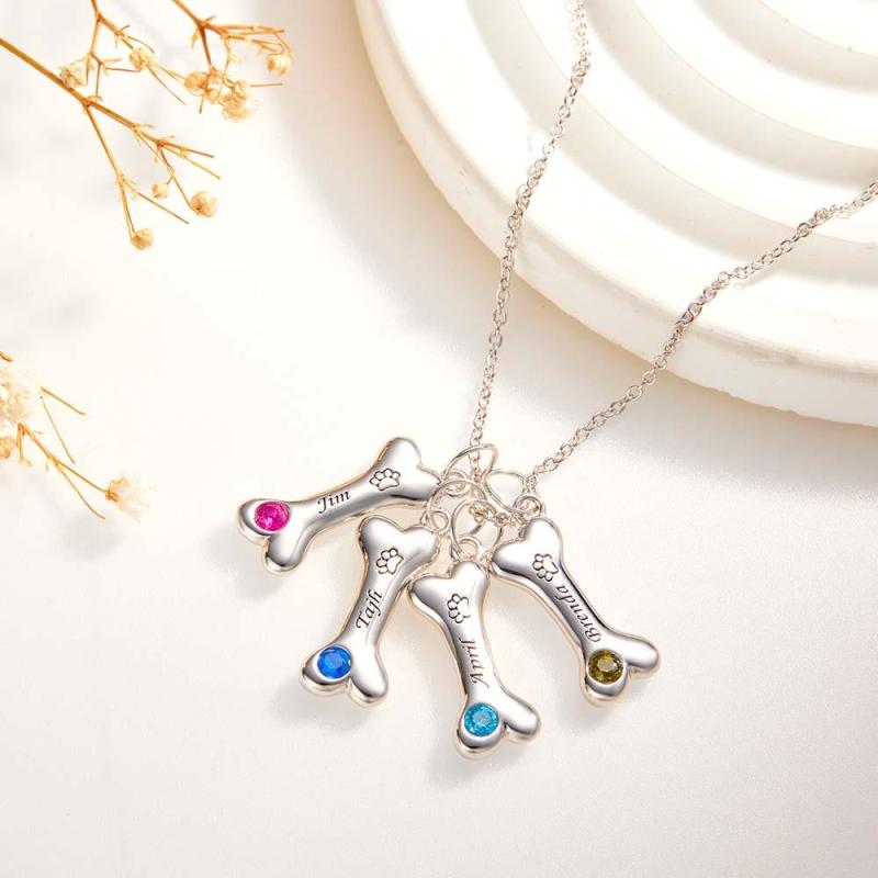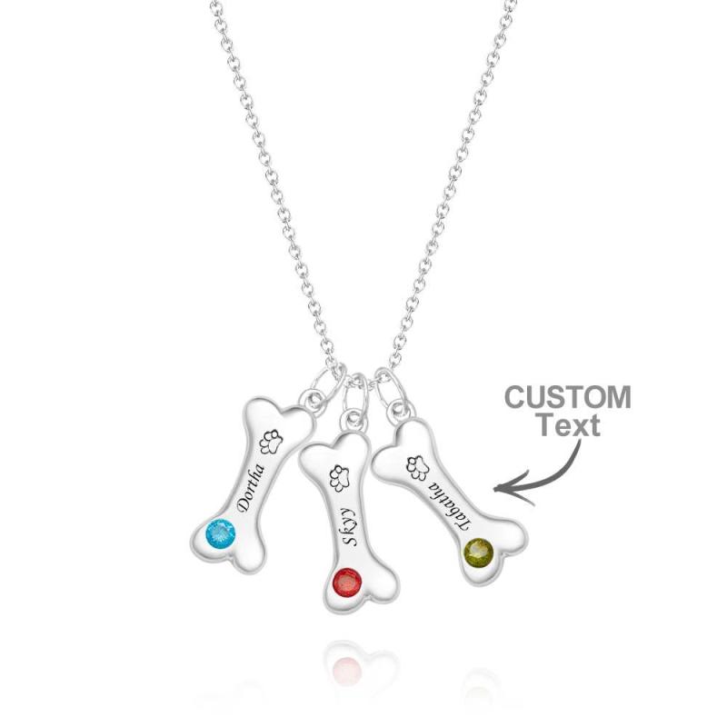 Engravable Bone Necklace With Birthstone Custom Pet Paw Pendant Gift For Pet Lovers