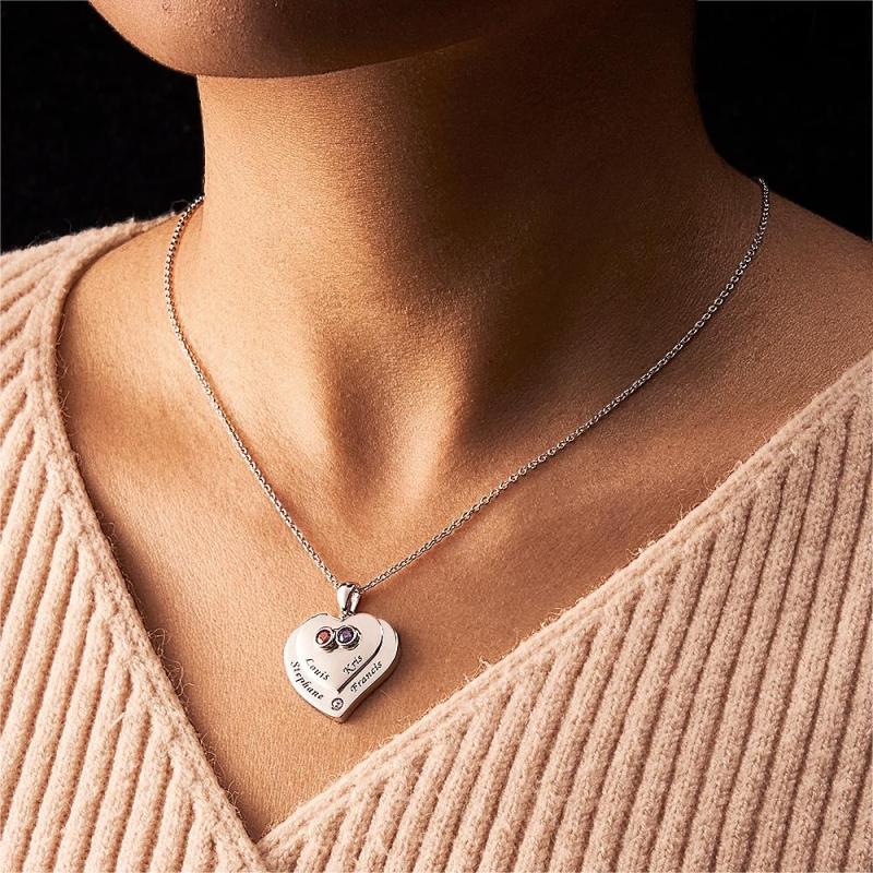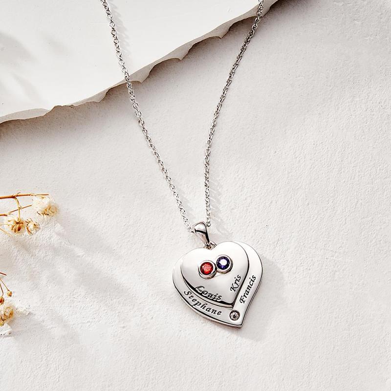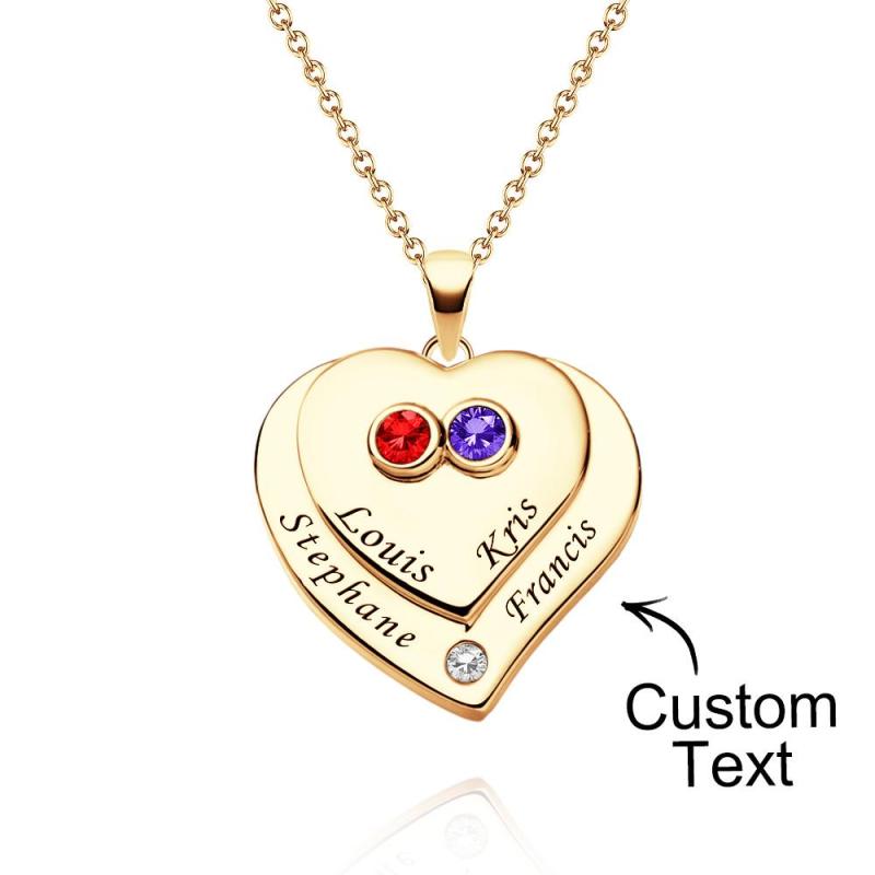 Engravable Double Hearts Necklace With Birthstone Beautiful Jewelry Gifts For Her