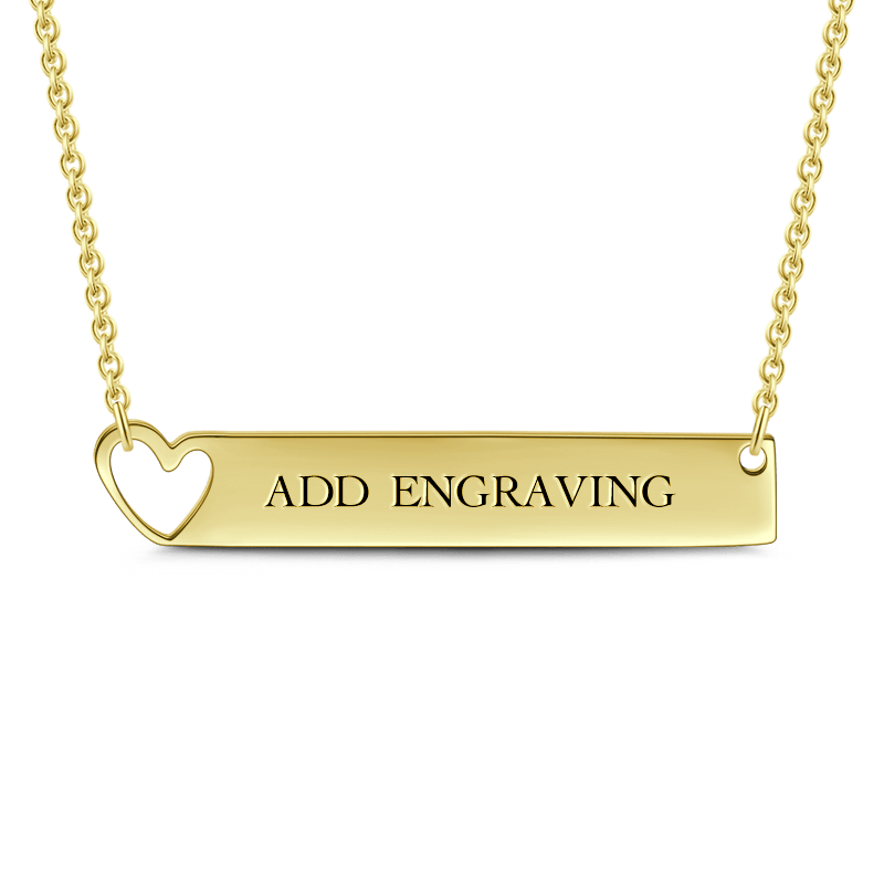 Engravable Heart Bar Necklace 14K Gold Plated