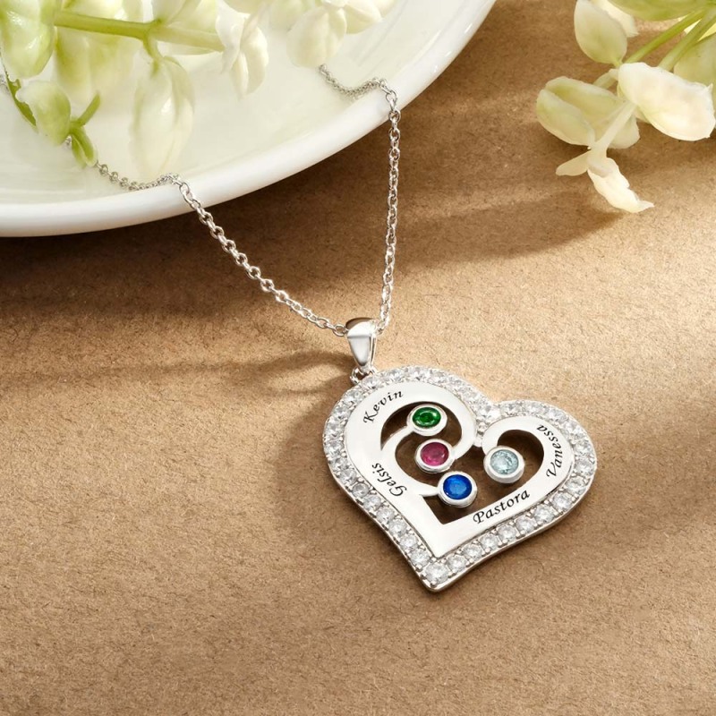 Engravable Heart Hollow Out Necklace WIth Zircon Decor Family Gifts