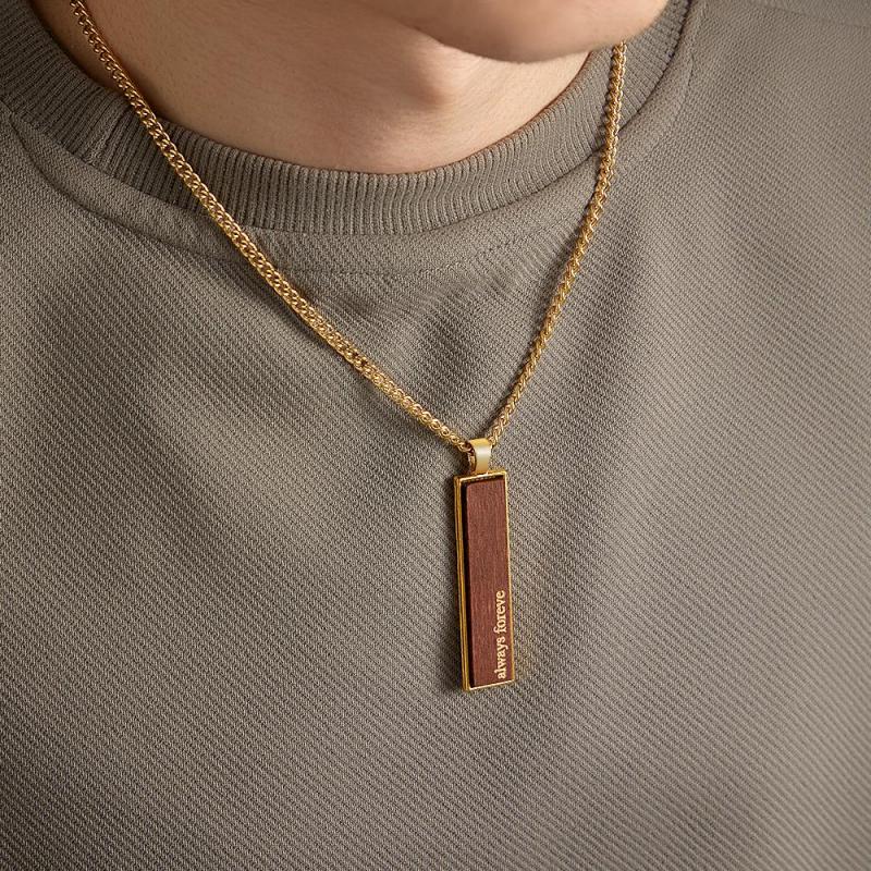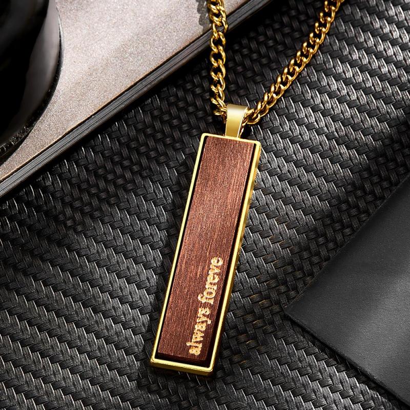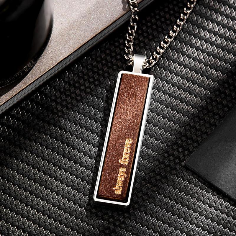 Engravable Wood And Metal Necklace Personalized Retro Pendant Gift for Wedding Anniversary