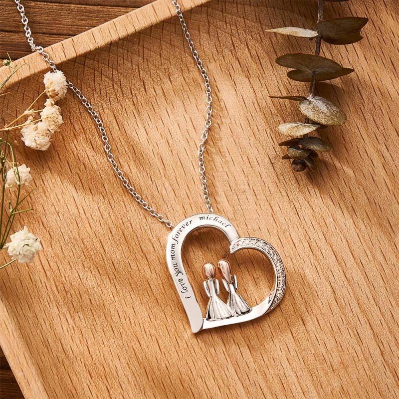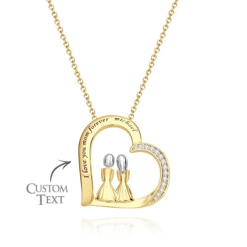 Engravable Zircon Necklace Two Girls Sitting Together Casual Necklace For Friends