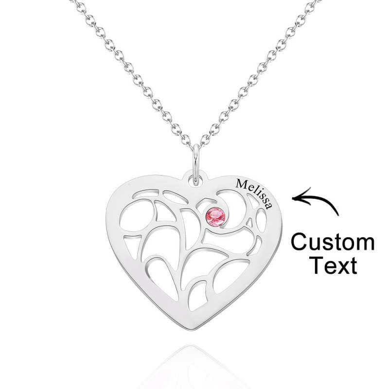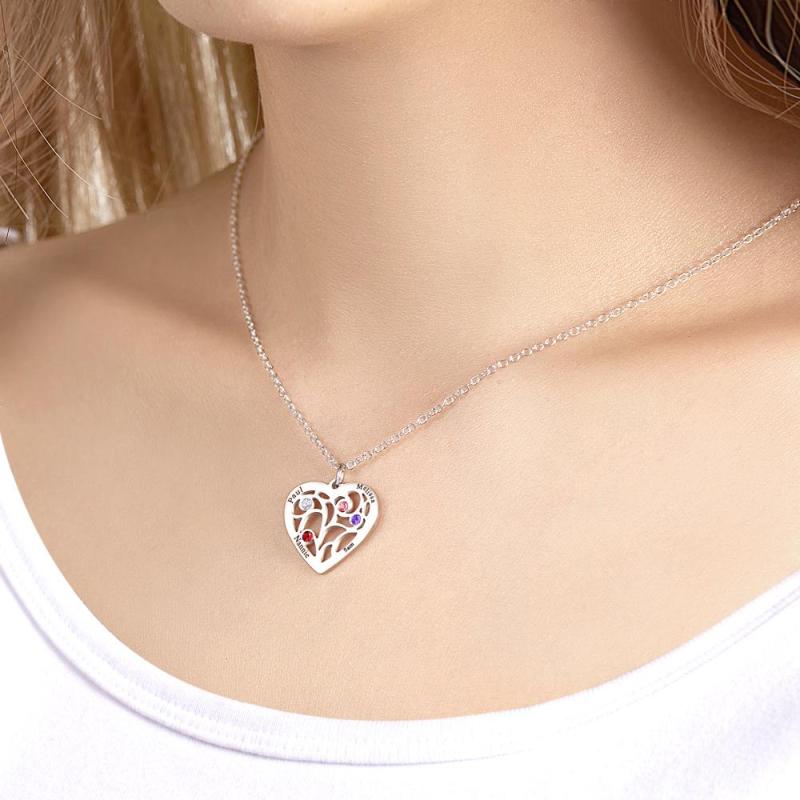 Engraved Birthstone Family Tree Necklace 1-5 Names Personalized Heart Shaped Pendant Christmas Day Gifts