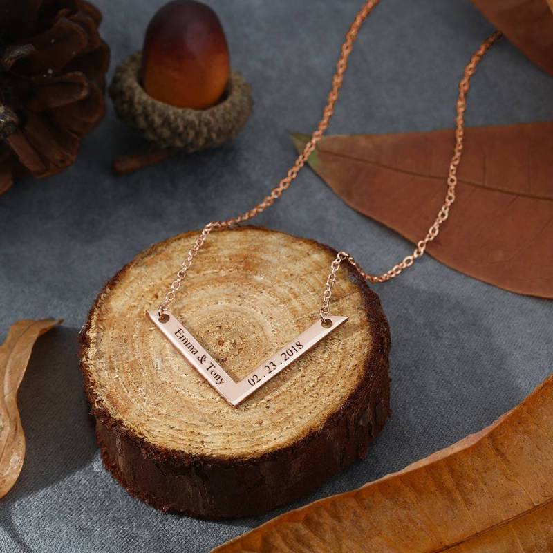 Engraved Bar Necklace Rose Gold Plated Silver