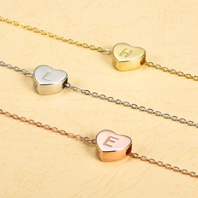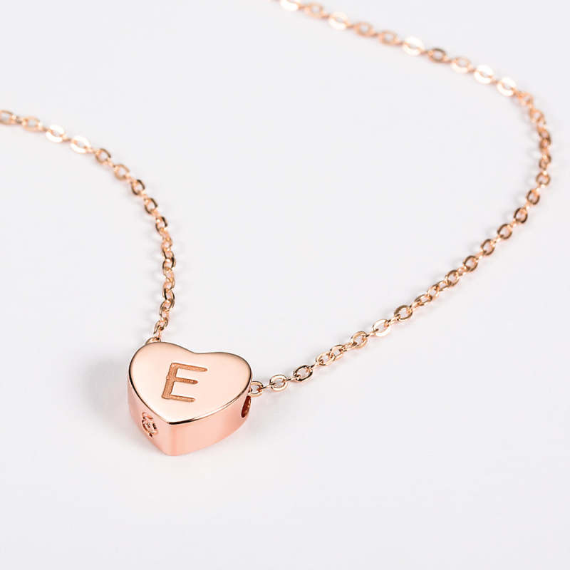 Engraved Heart Initial Necklace Set 14k Gold Plated