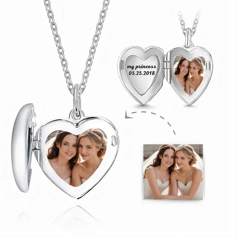 Engraved Heart Photo Locket Necklace Silver Tailored LGBT Lesbian Wedding Gift