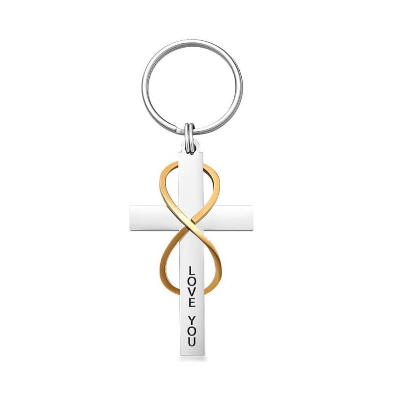 Engraved Keychain Cross Keychain Stainless Steel Gifts for Him Love You