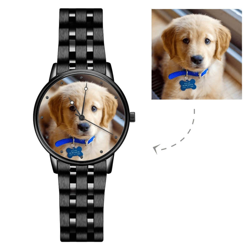 Engraved Men's Black Alloy Bracelet Photo Watch 38mm For Love