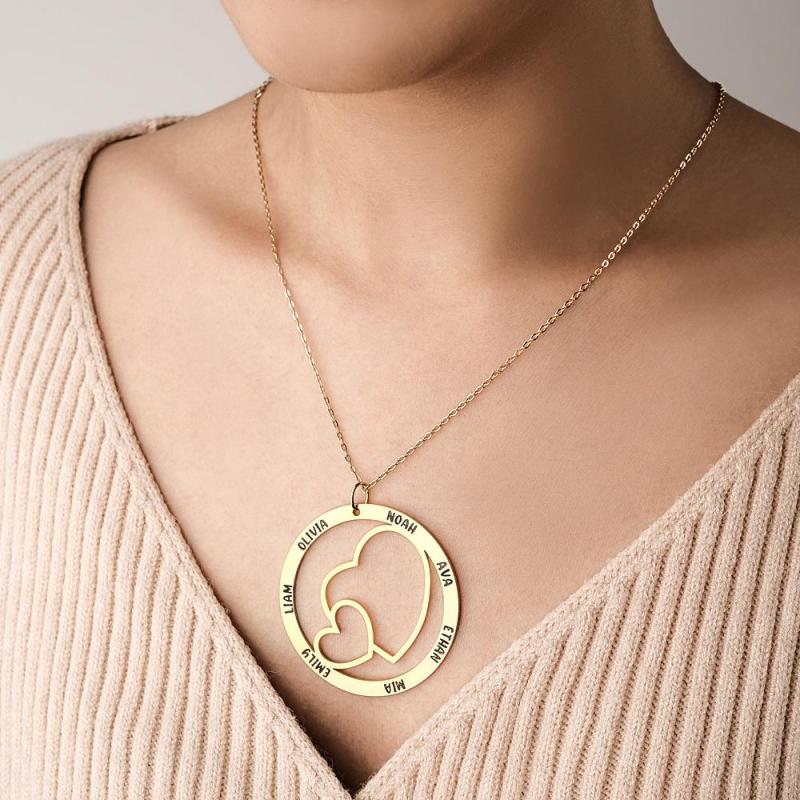 Engraved Name Necklace With Double Hearts Circle Elegant Pendant Jewelry Gifts For Her