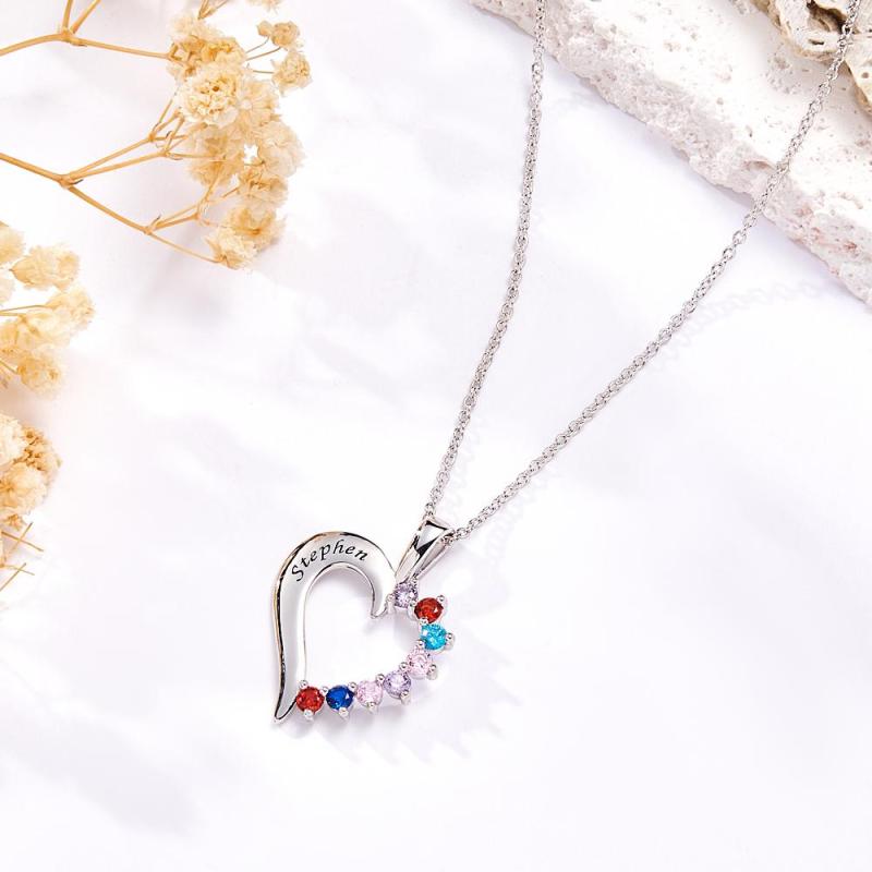 Fashion Birthstone Necklace Heart-Shaped Pendant For Her