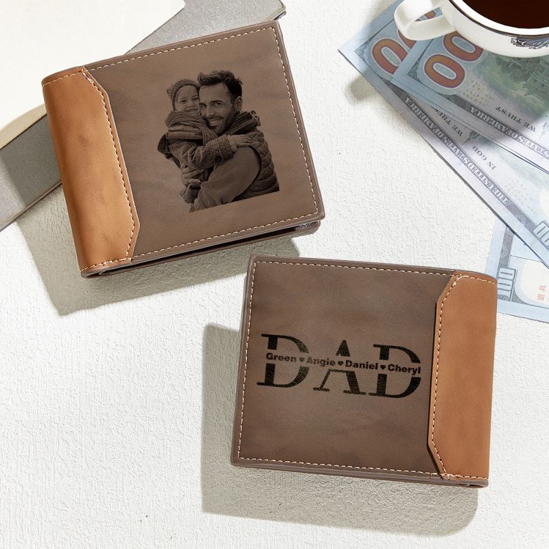 Father's Day Gift Personalized Photo & Name Leather Wallet Custom Engraved Leather Wallet with Photo & Kids' Names