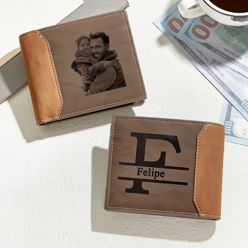 Father's Day Gifts Custom Photo Engraved Name Leather Wallet Personalized Etched Picture Initial Wallet Unique Gift for Him