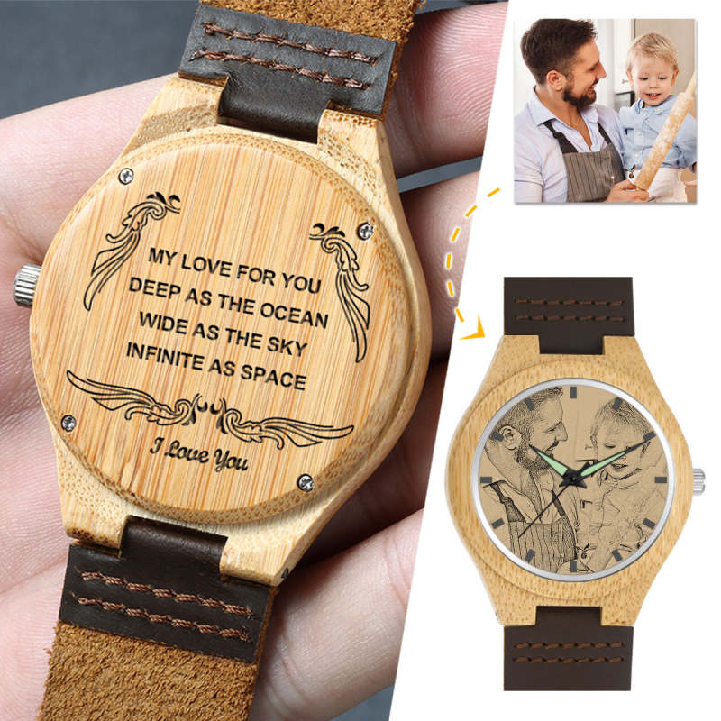 Custom Men's Engraved Bamboo Wooden Photo Watch