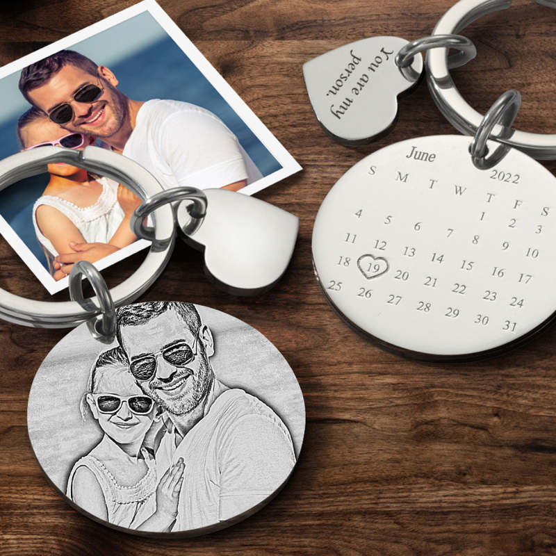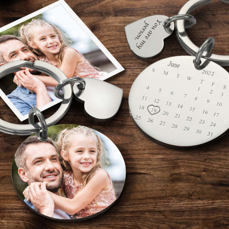 Custom Photo Engraved Calendar Silver Keyring Key Chain For Children Best Friends ANNIVERSARY GIFT