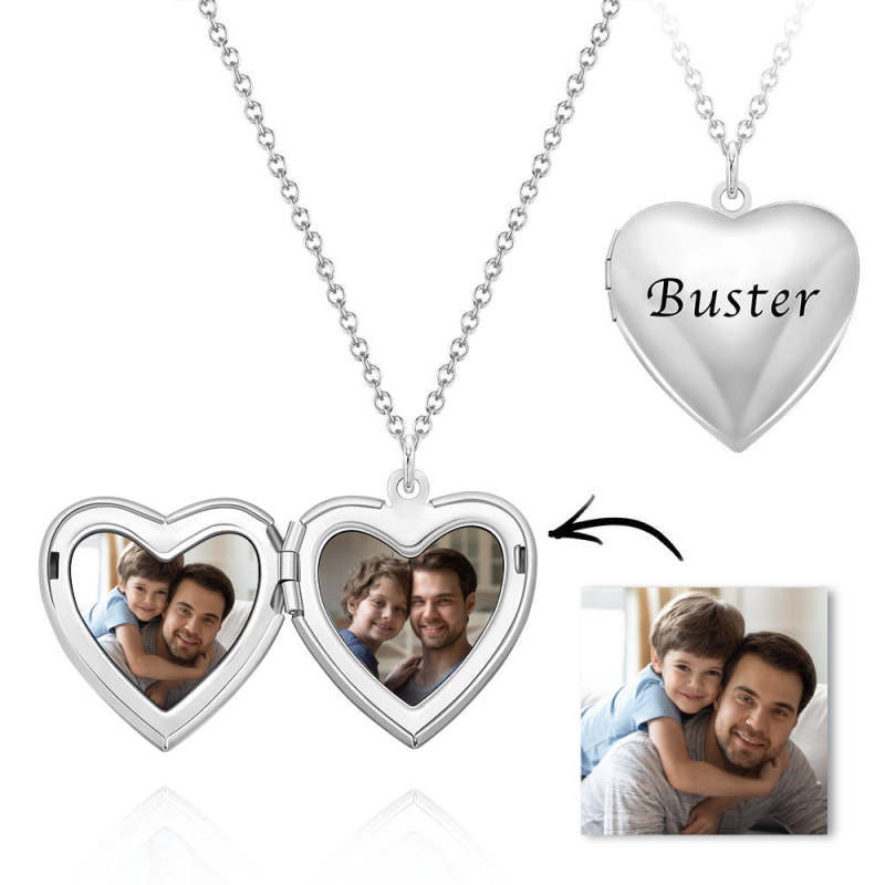 Father's Day Gift Custom Photo Engraved Necklace Heart-shaped Locket Necklace Creative Gift