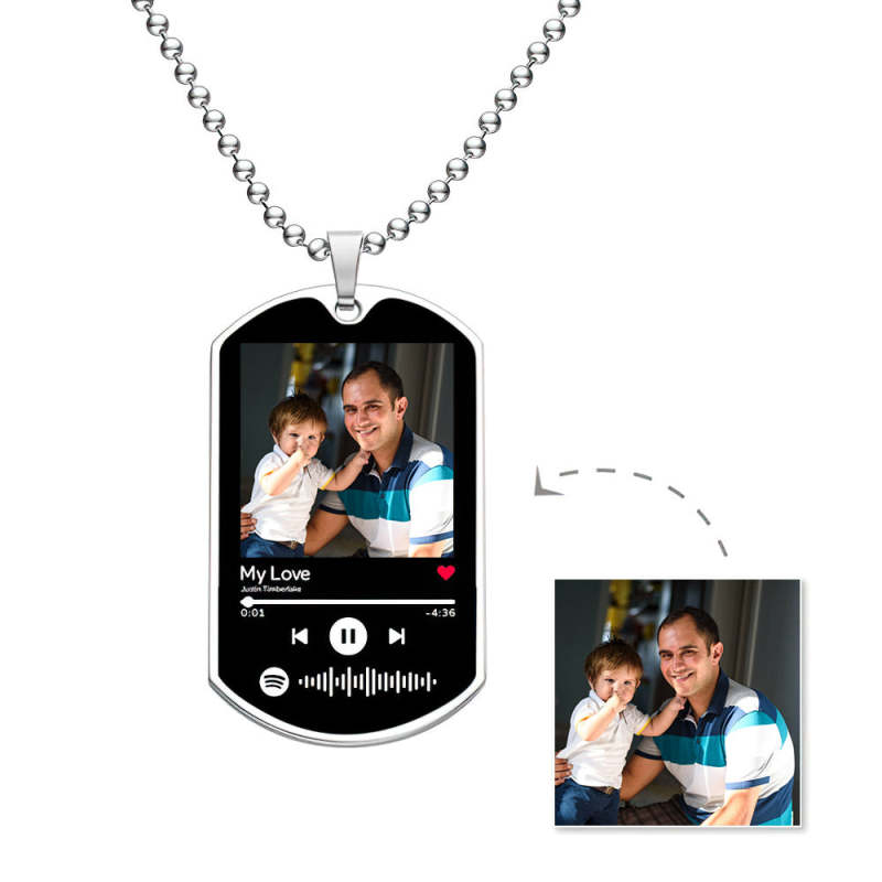 Father's Day Gift Personalized Music Spotify Code Stainless Steel Dog Photo Necklace