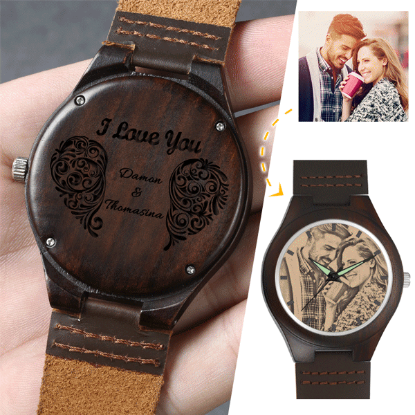 Custom Men's Wooden Watch Love with Heart Engraving
