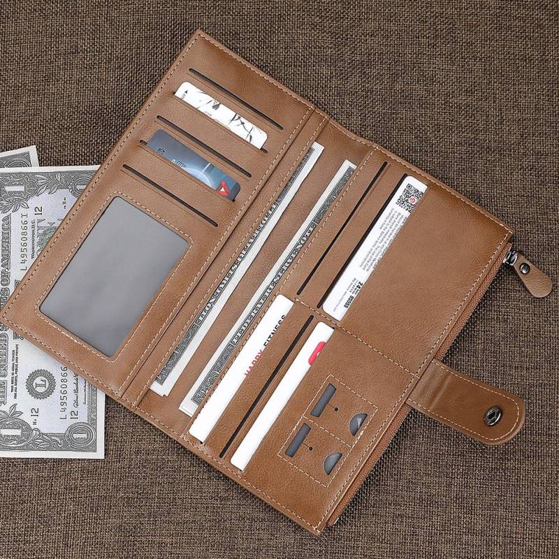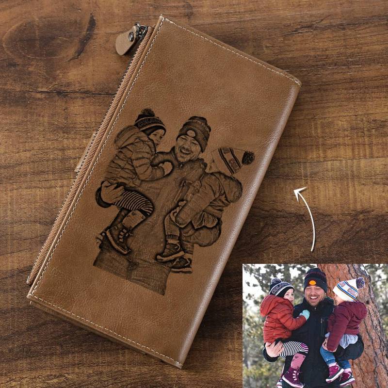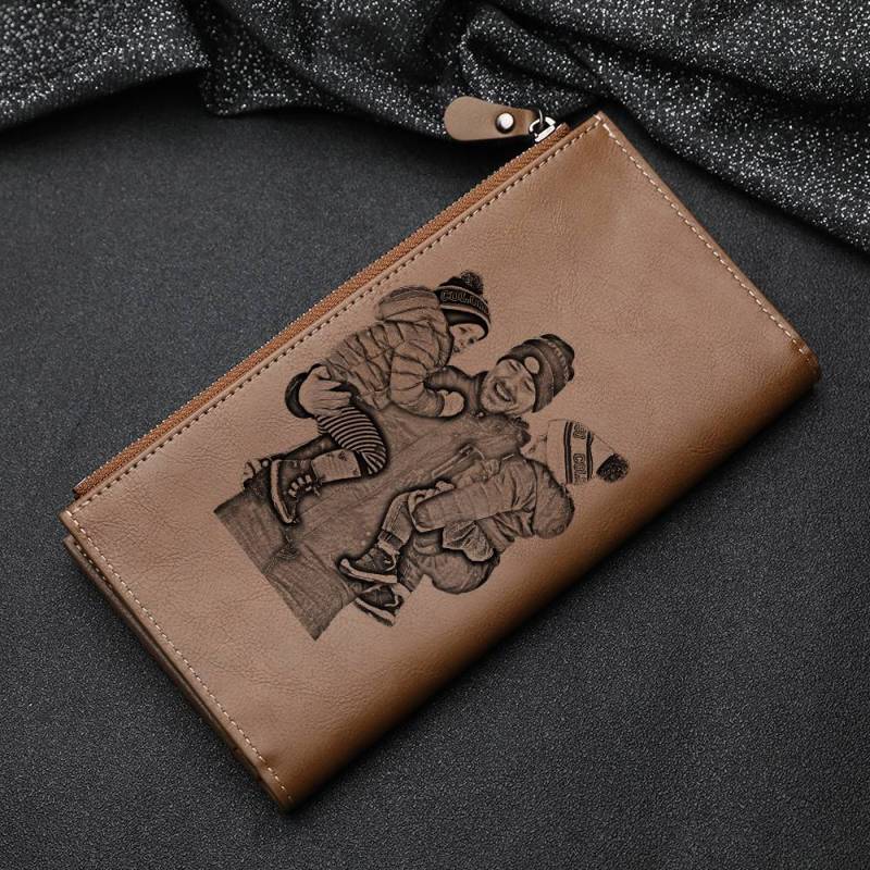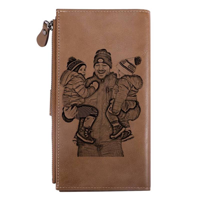 Men's Custom Inscription Photo Engraved Wallet - Brown Leather