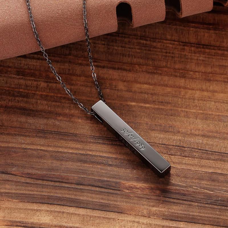 Men's Vertical 3D Bar Necklace with Engraving