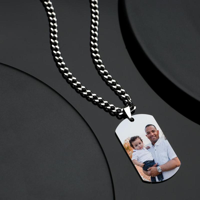 Personalized Photo Engraved Necklace Stainless Steel Gift For Dad