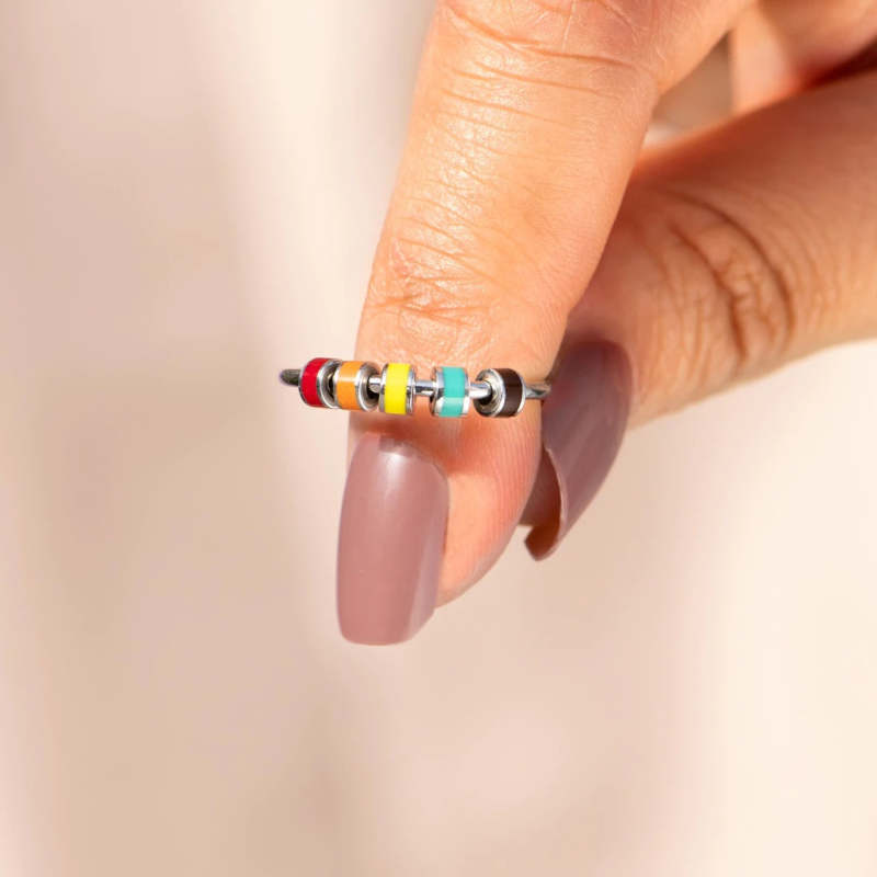 Fidget Ring Spinner Anti-anxiety Silver Ring Macaron Enamel Jewelry Gifts for Her