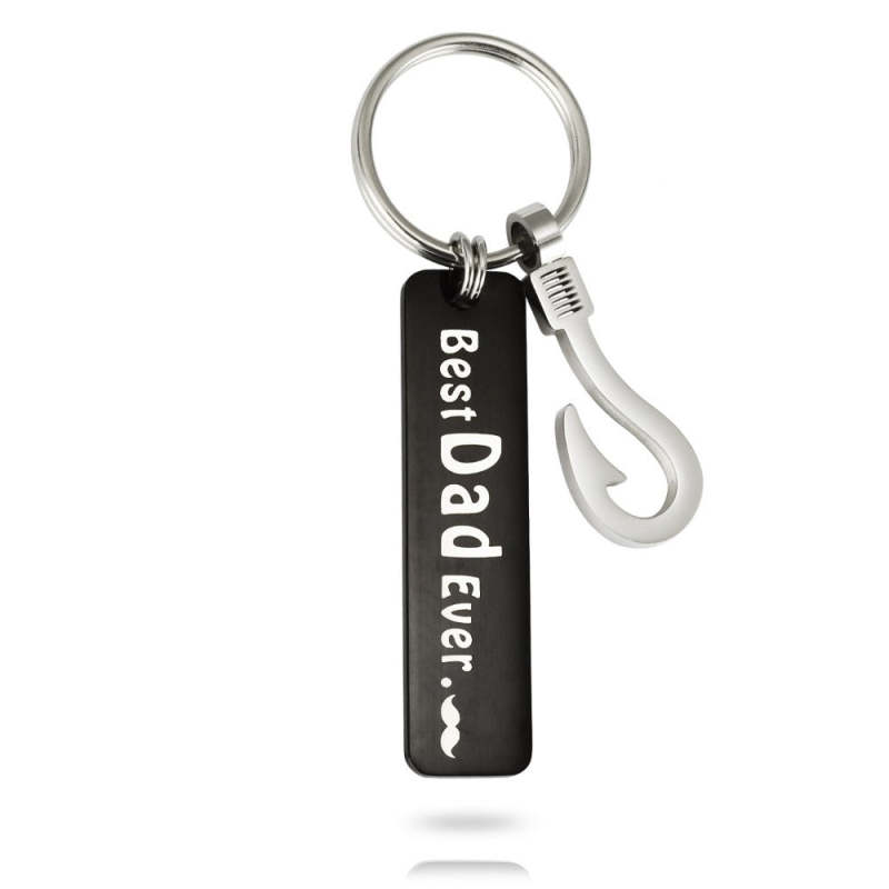 Fishing Hook Keychain Stainless Steel Best Dad Ever Metal Pendant