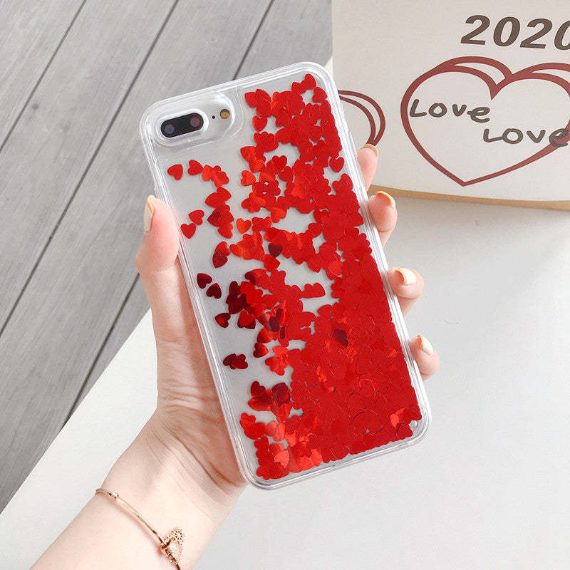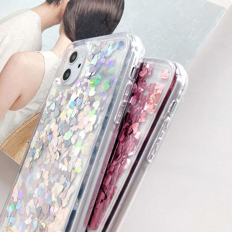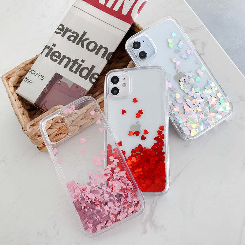 Flash Powder Love Heart iPhone Case Transparent Quicksand Phone Protective Cover