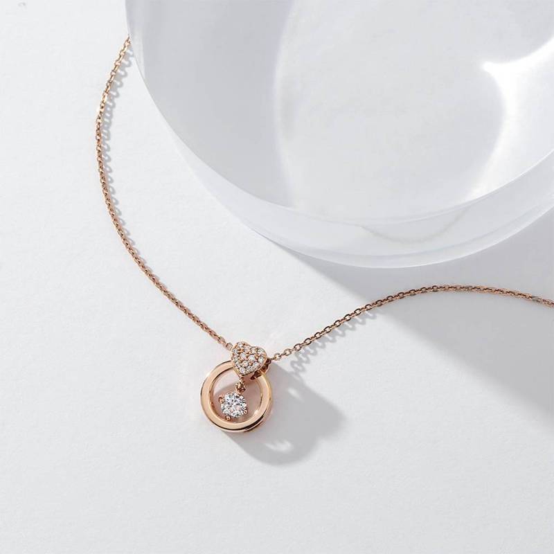 True Love Floating Heart Pendant Necklace in Rose Gold Plated