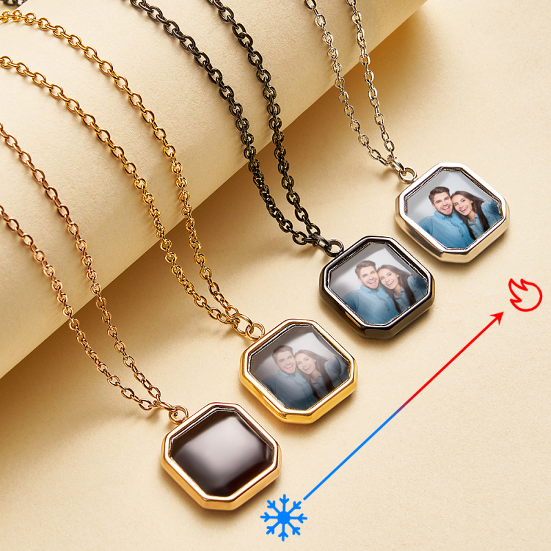 Fun Gifts Custom Photo Hidden Heart Magic Necklace Personalized Cold Concealed Photo Necklace Heat Reveal Picture Necklace Suprise Gifts
