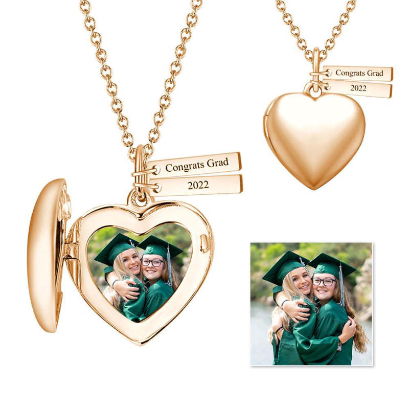 Gifts for Graduation Personalized Heart Photo Locket Necklace With Engraving Name Rose Gold Plated