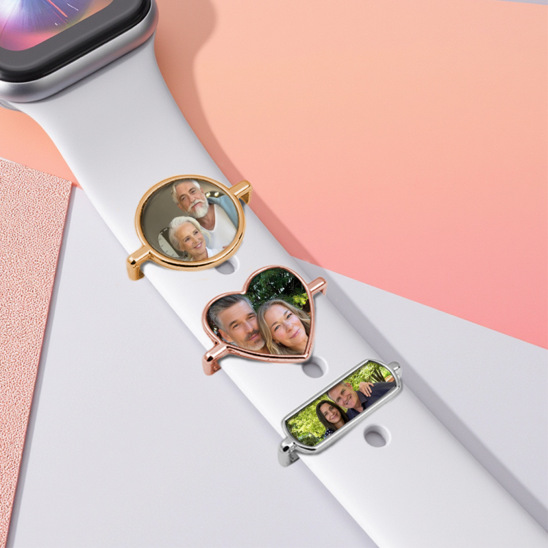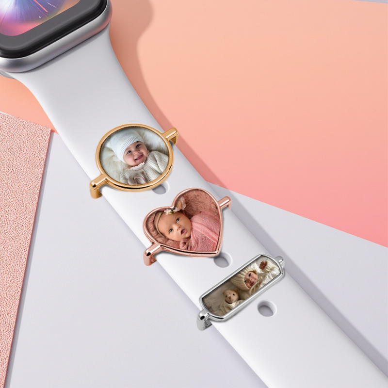 Gifts for Her Custom Photo Engraved Watch Strap Charm Personalized Smartwatch Beaded Accessory Photo Apple Watch Charms