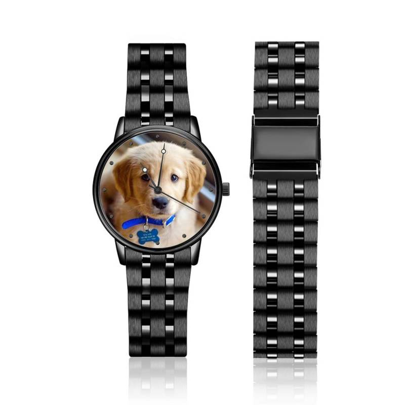 Graduation Gifts Engraved Men's Black Alloy Bracelet Photo Watch 38mm
