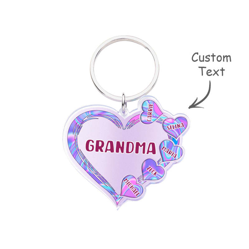 Grandma Mom Violet Heart Kids Mother's Day Personalized Acrylic Keychain
