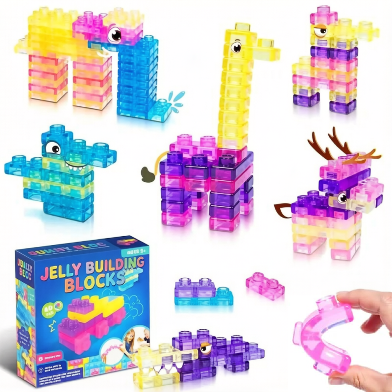 Jelly Building Blocks: 40-Piece Montessori Sensory Building Soft Toy Blocks
