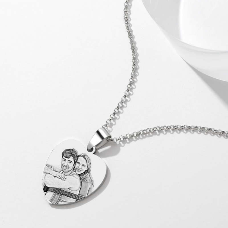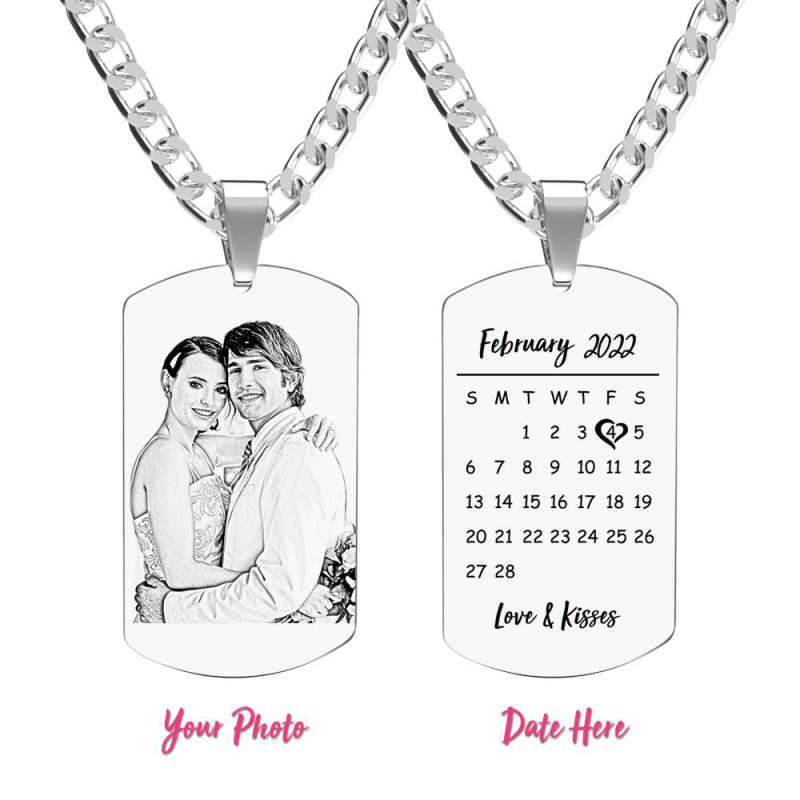 Heart Photo Calendar Engraved Tag Necklace With Engraving Stainless Steel Gifts for Her