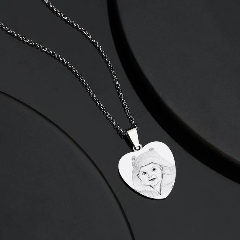 Heart Photo Engraved Tag Necklace With Engraving Stainless Steel For Dad
